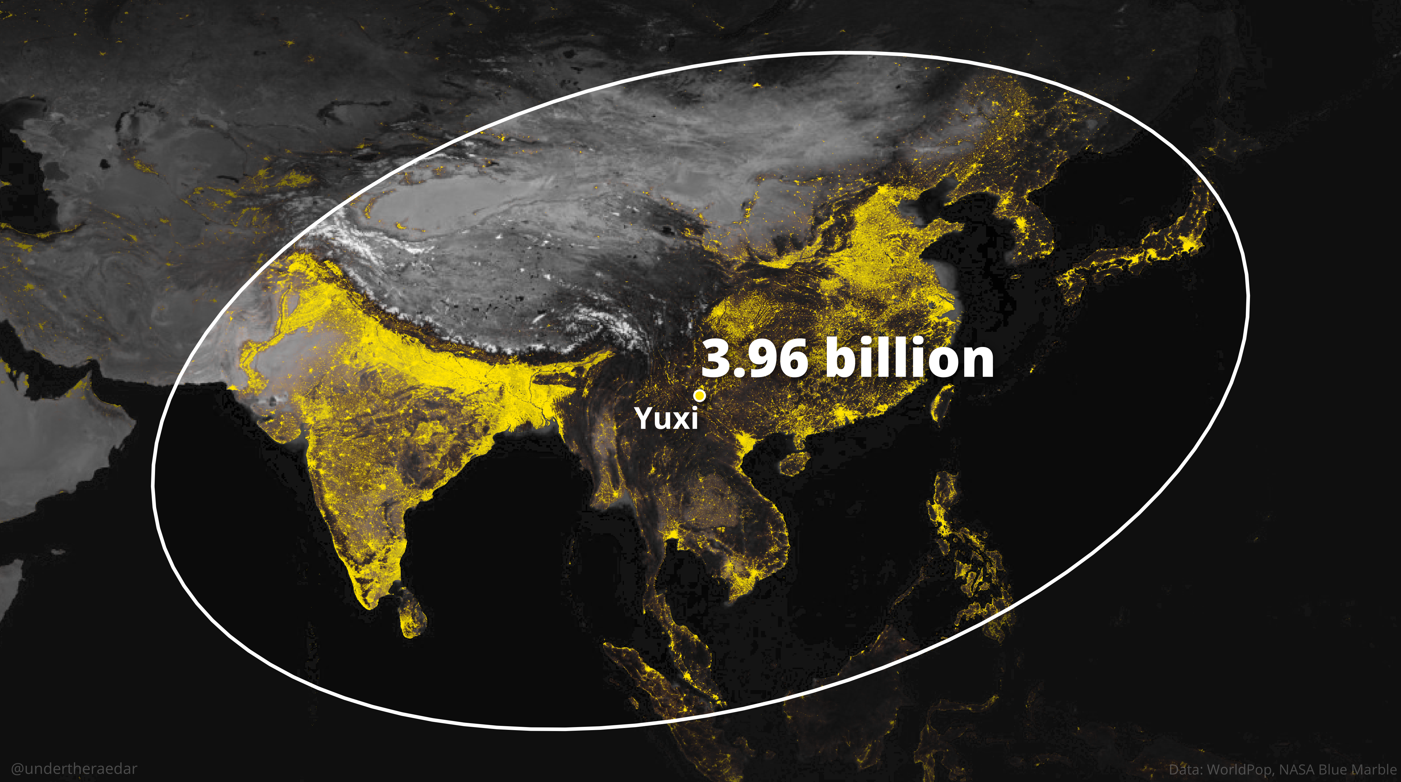 More than half the world’s population lives within the Yuxi ellipse.